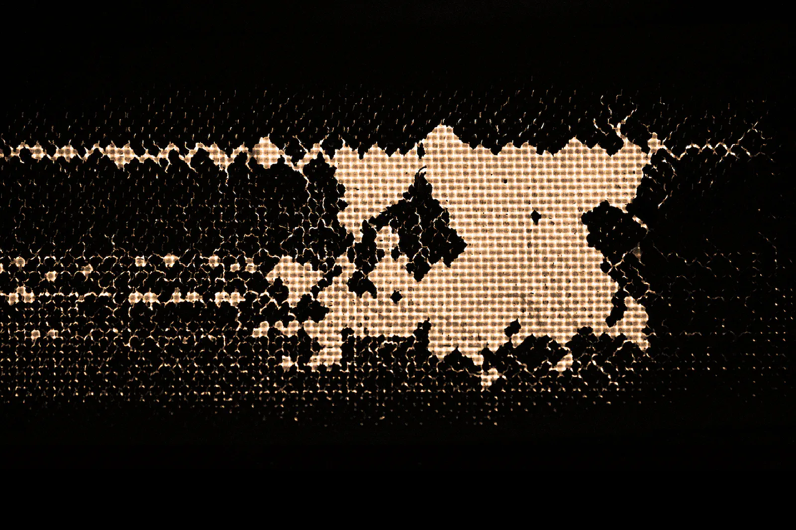 The procedure at hand follows the opposite direction where posed out of its given context the object loses its practicality and in being shown “nude” serves as a terminal for a parallel world of industrial teleology and material corporality. “In:Process” is a theory-fiction based on the near-reality of everyday life, a meditation on degradation and emergence but mainly a method of reversing infrastructural sublimation.
