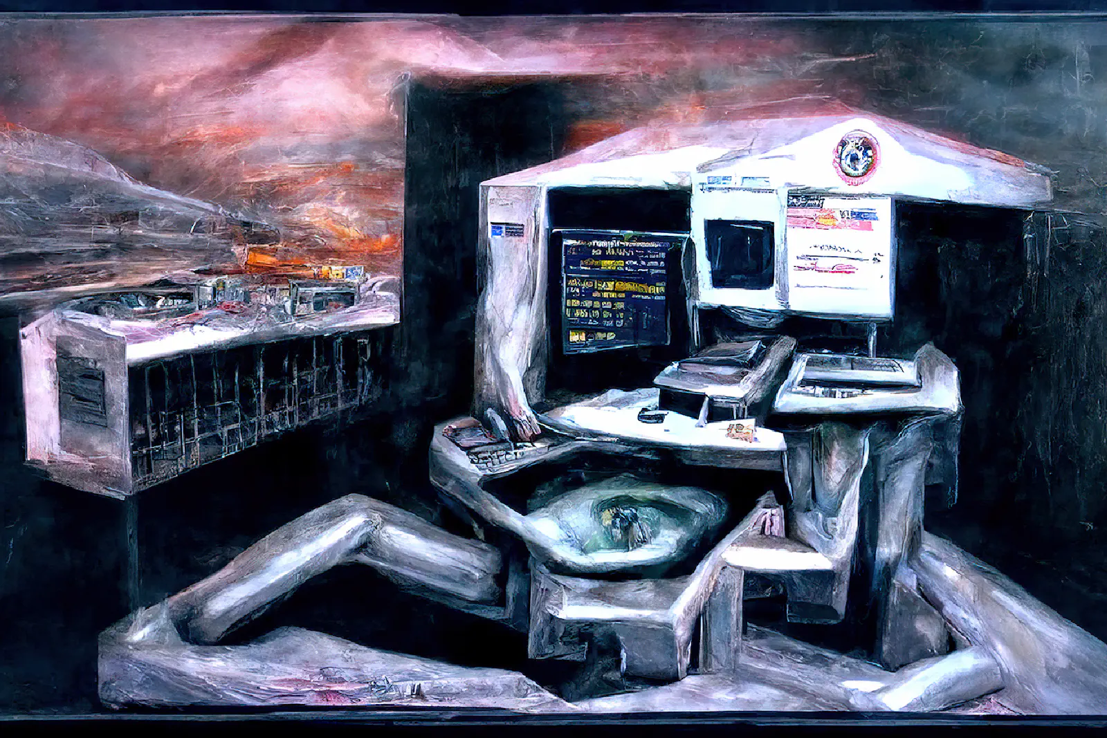 Latent space is where the gaze of artificial intelligence alone draws the picturesque horizon, delving into the hidden rooms of secret research centers, intelligence organizations, and classified databases. An imagined space that the machine illuminates, exposing the postmodern subject’s built-in subversiveness of aesthetic experience in its internal mechanics, referentiality, and element of incompleteness. The so-called noise in communication theory is a recognized information field that does not lend itself to systematization. Instead, the algorithm builds faces, machines, corridors, and cloud spaces in their procedural incompleteness. The recent paranoia of unsubstantiated fact has become the factual divergence from a reference matrix.